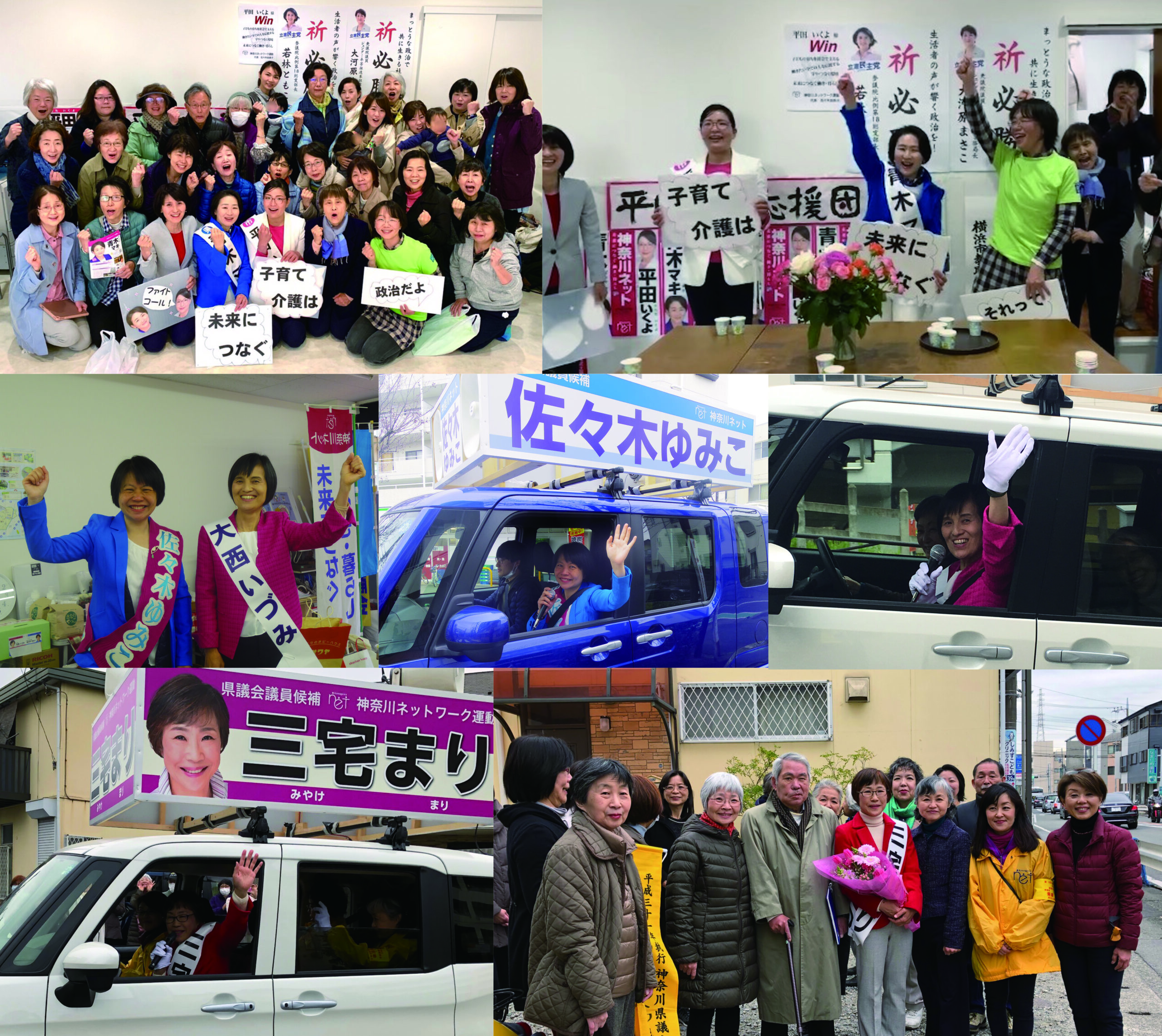 神奈川県議会選挙、川崎市議会議員選挙、横浜市議会議員選挙がスタートしました。生活の課題の多くが政治につながっています。当事者目線で課題の解決に向け、「未来につなぐ働き・暮らし」「子育て介護は社会の仕事」の基本政策をもって全員当選に向けて戦います。
