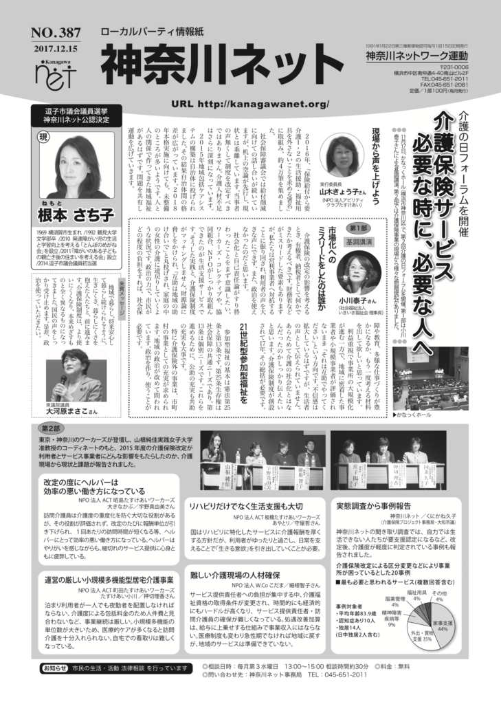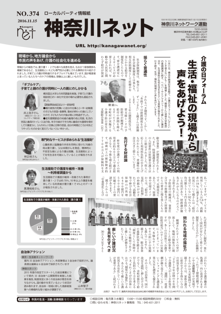 参議院選挙が終わり、国の社会保障審議会・介護保険部会では、次期制度改定の議論が急ピッチで進んでいます。 神奈川ネット介護保険プロジェクトは、緊急アクションチームを立ち上げ、保険給付から「要介護1・2の生活援助と福祉用具他を外さないことを求め... -