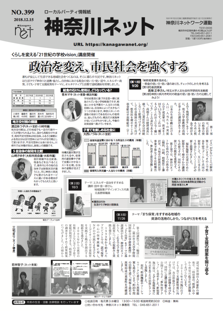 1面 ・それって政治だよ! ~子どもの育ちを社会で支える~ 新しい生き方・働き方研究会 ~多文化共生社会に向けて~ 市民による人間の安全保障研究会 ~化学物質対策を進める~ 香害対策アクションチーム ~居場所兼働き場の拡充を~ ワーカーズ・コ... -