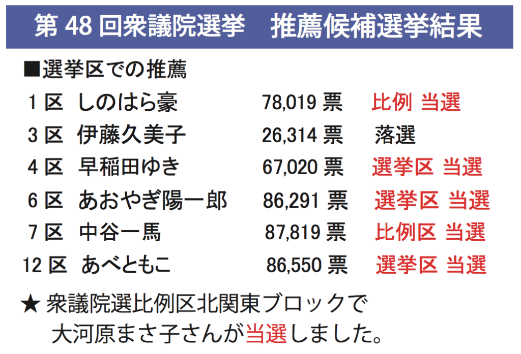 第48回衆議院選挙 推薦候補選挙結果