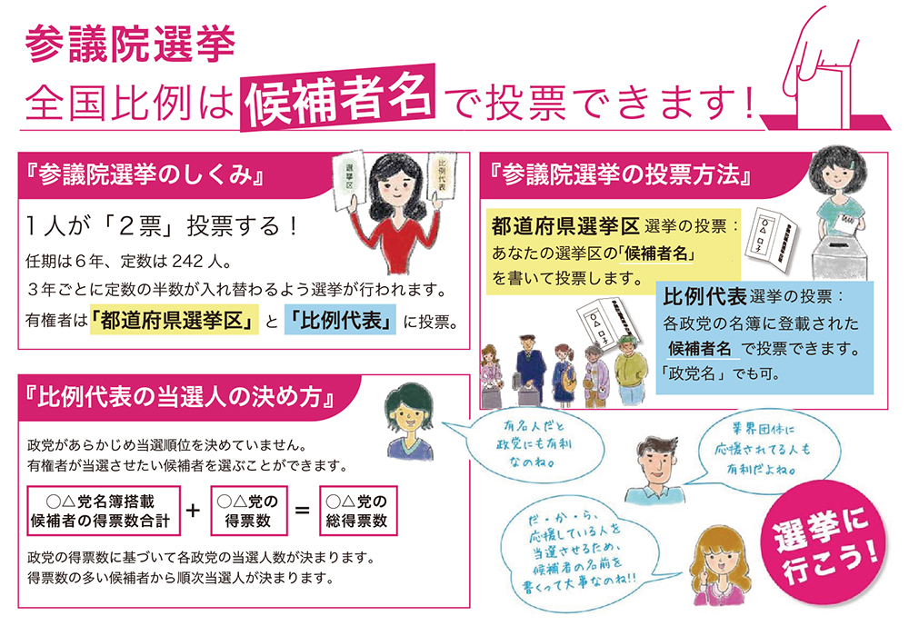参議院選挙の「しくみ、投票方法、当選人の決め方」はこちらから! -